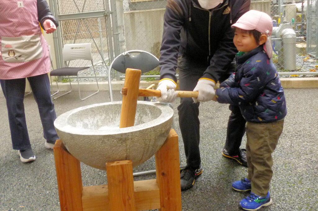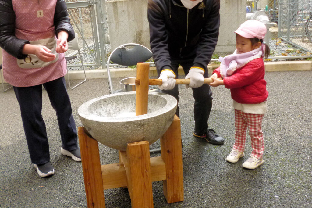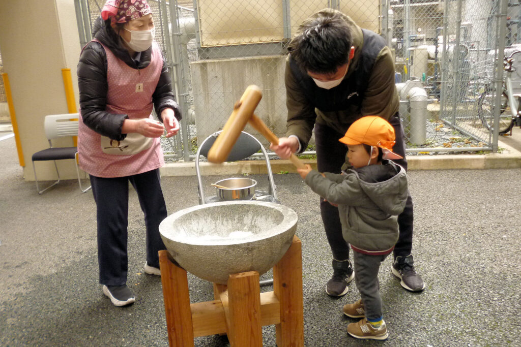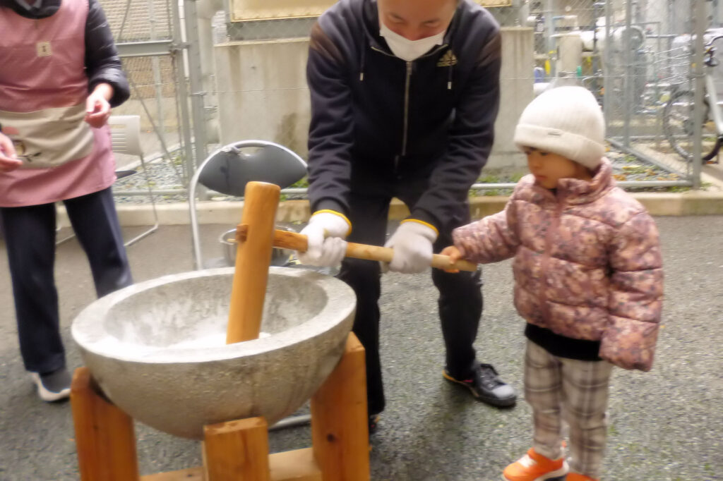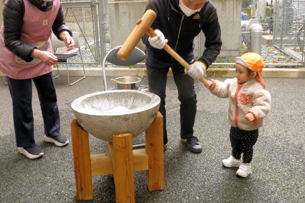 ライフ・キッズの子どもたちも、みんなでもちつきに参加しました。初めてのもちつき体験、泣いてしまう子どももいましたが、それでも懸命についてくれました☺