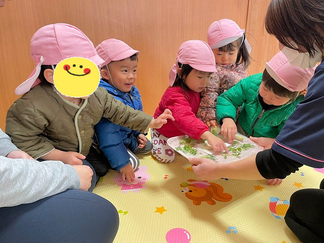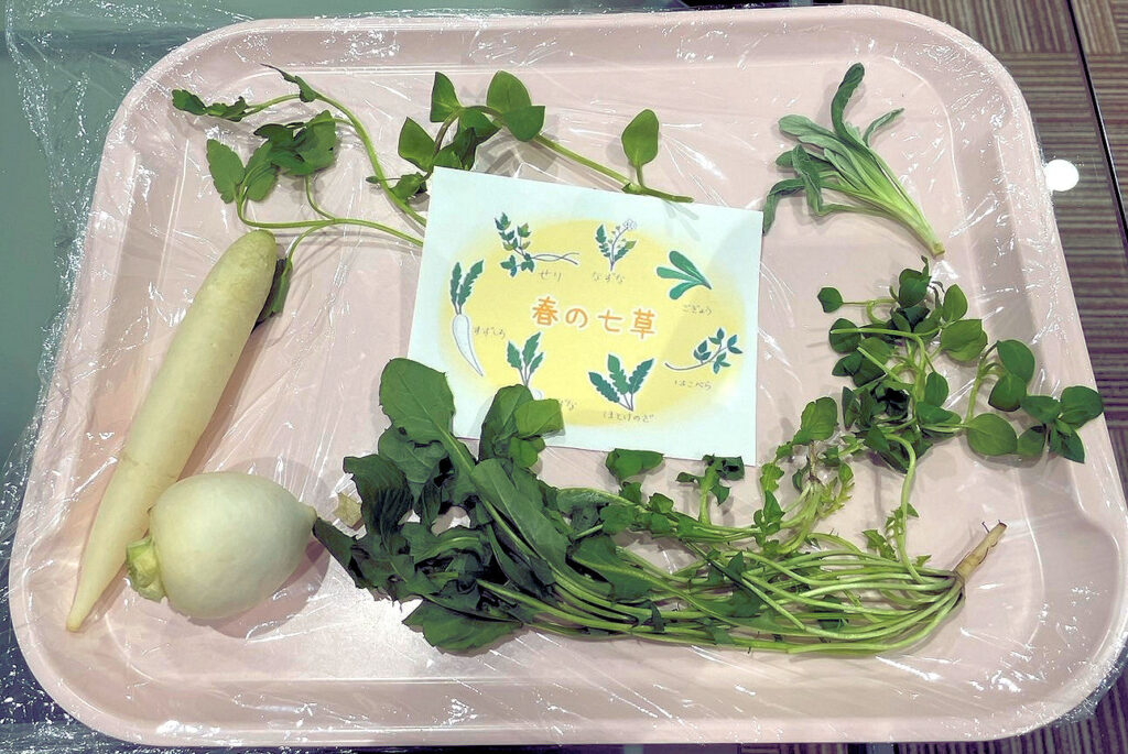 7日は、栄養士の先生が料理前の「春の七草」を