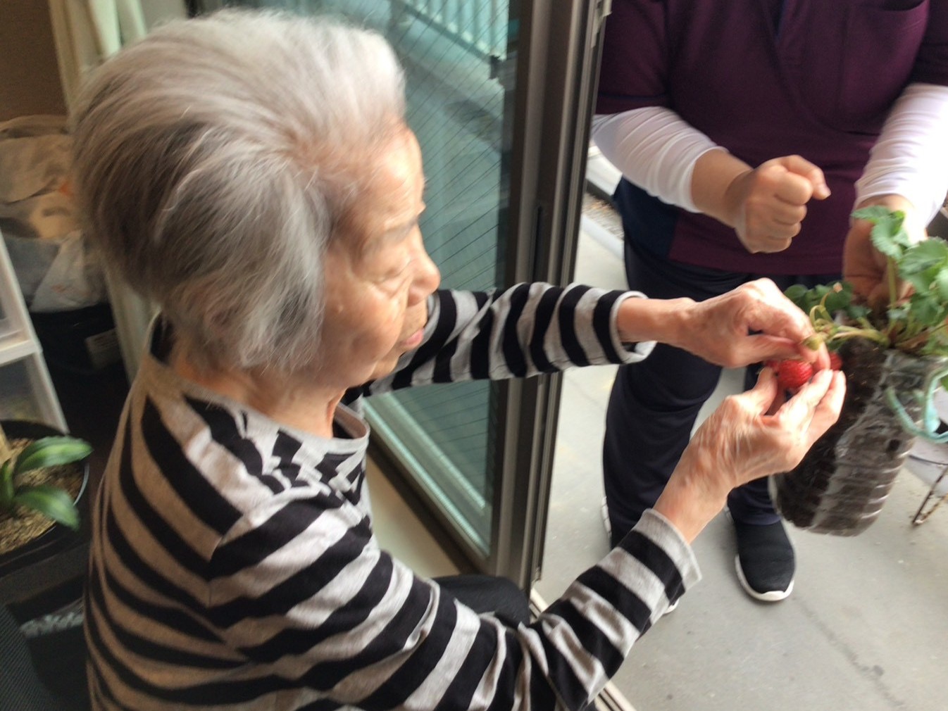 昨年11月の買い物外出で購入した「イチゴの苗🌱」。 その「イチゴ」が実をつけ、先日、待ちに待った収穫を行いました。