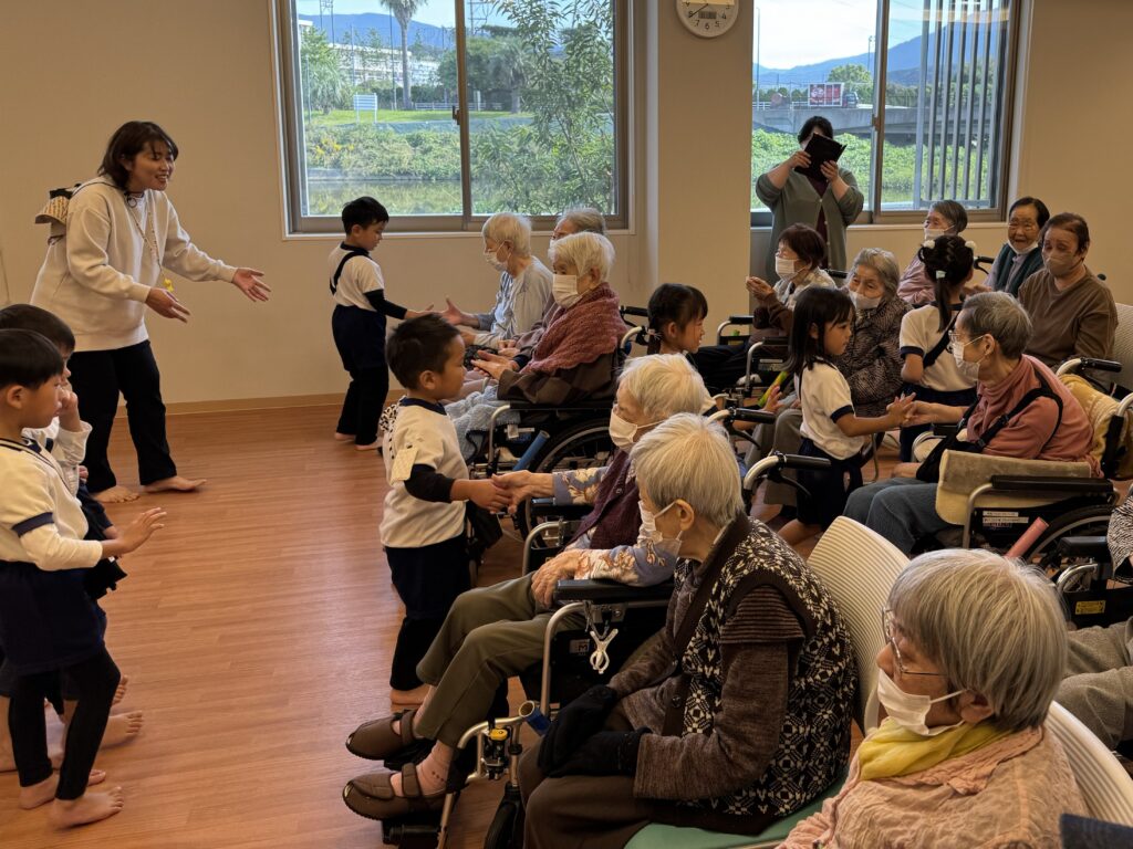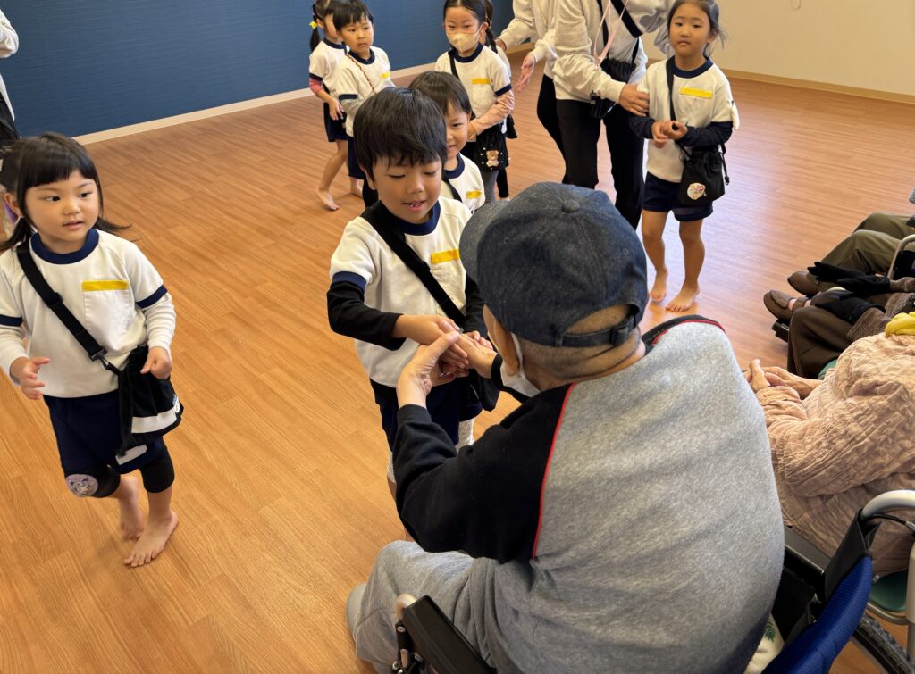最後は入所者の皆さまと園児たちが握手を交わし、温かい雰囲気の中でお別れとなりました。短い時間ではありましたが、心温まる素敵な時間を過ごすことができました。
