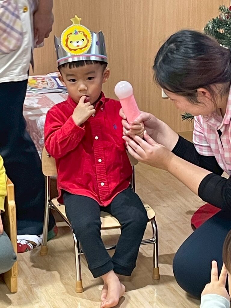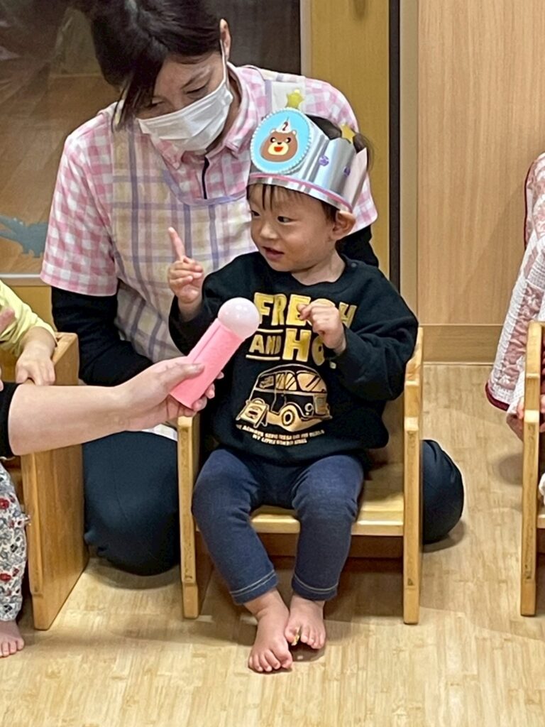 緊張しているお友だちもいましたが、みんなから「おめでと~!」と言われると嬉しそうにする姿も見られました🎶