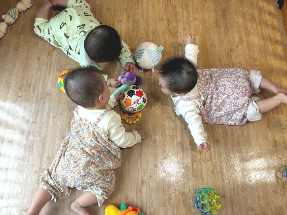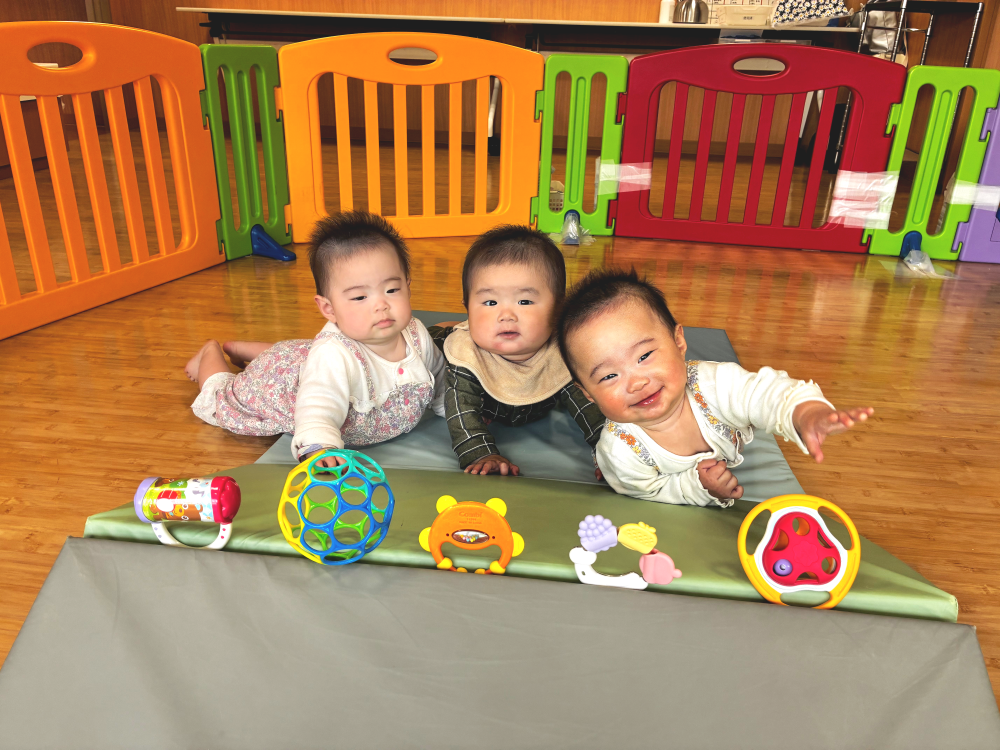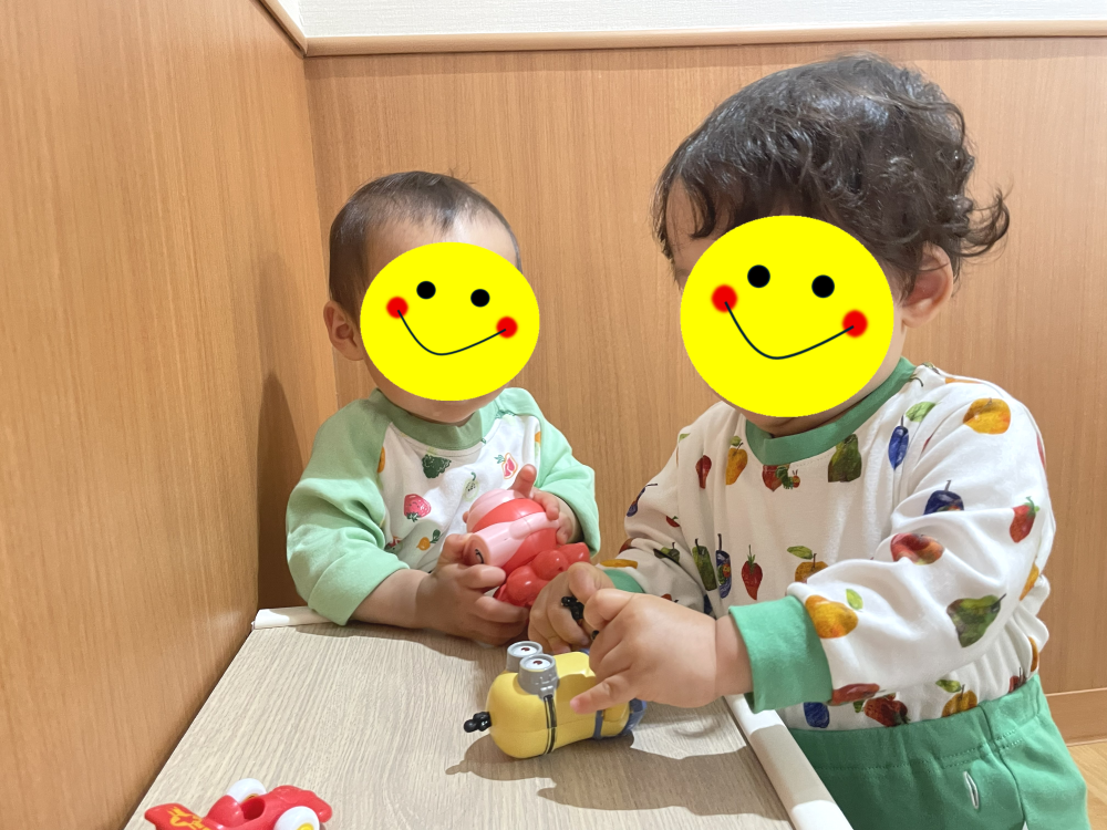 おもちゃで遊んだり~ お外の風に吹かれたりと 楽しく過ごしていま~す!
