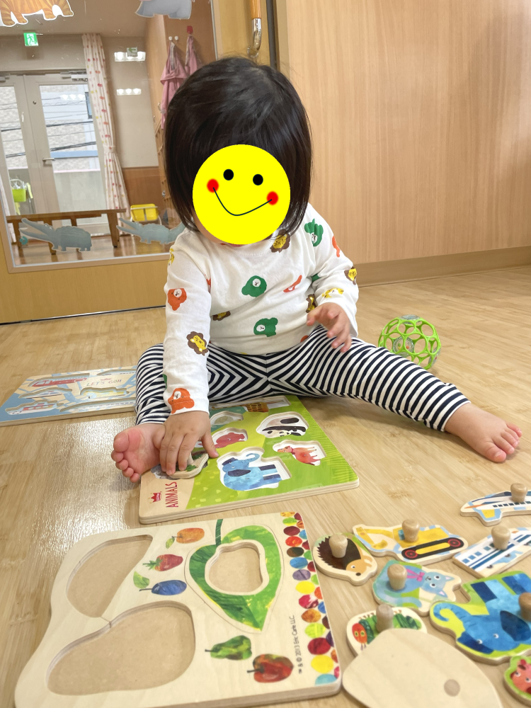 室内では、ボールやパズルなどいろいろなおもちゃで遊んでいます。