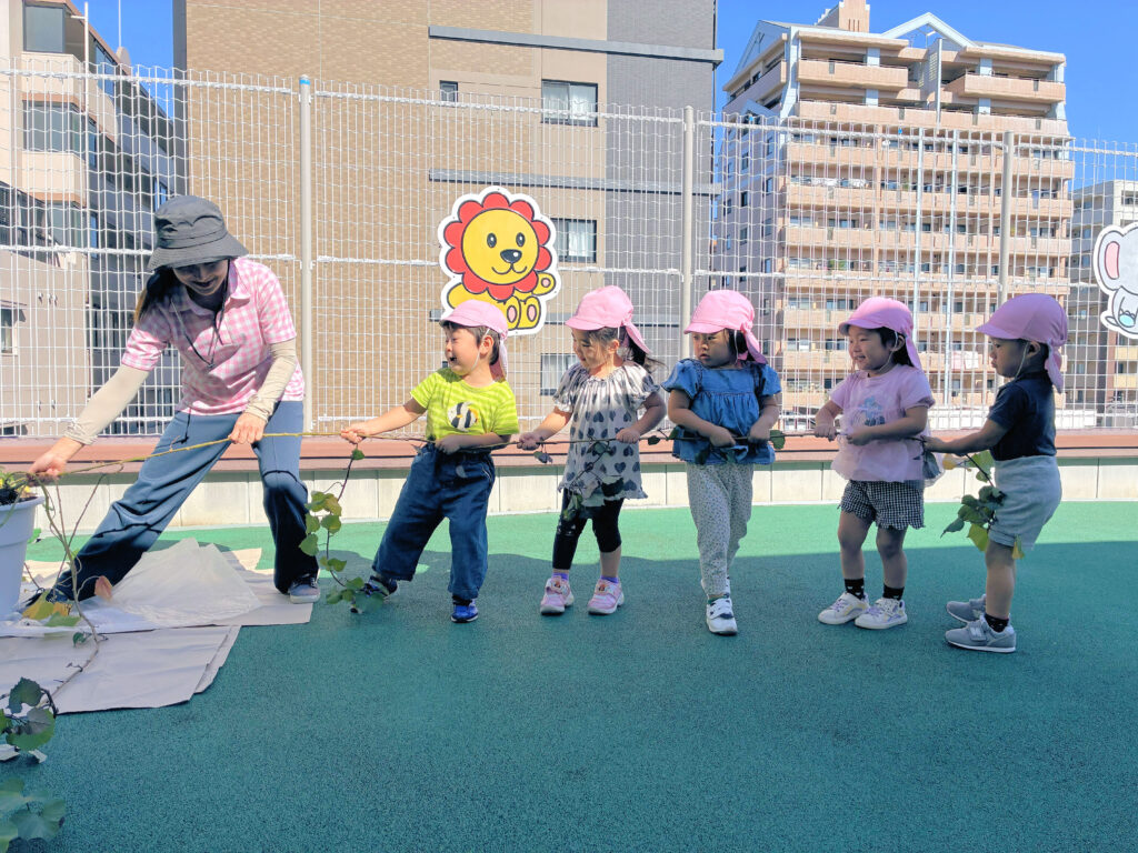 らいおんぐみさんが、5月からプランターや川沿いの小さな花壇で育てた